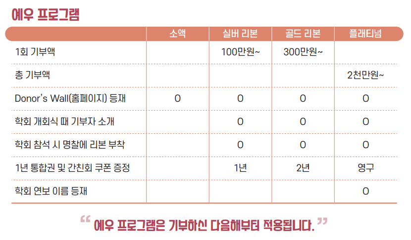 글로벌 메디컬은 우리가 도움을 받던 시대를 넘어서 도움이 필요한 개발도상국을 지원하는 글로벌 사회적 필요성을 견지하고 있습니다. 국제적 학술 교류 및 연구활동 지원을 통해 학문적 발전을 도모하고, 우리의 선진 의료 시스템의 홍보, 현지 의료인력 연수 및 교육 등을 통해 주변국들의 보건 의료 서비스의 질을 향상시키고자 합니다. 또한, 세계적 보건기구와 연계된 국제수준의 건강증진 홍보사업을 전개해서 우리나라 국민들의 보건의료 향상에 기여하고자 합니다. 사단법인 글로벌 메디컬이 글로벌 헬스케어 분야의 연구와 발전을 국제적으로 선도할 수 있도록 회원님의 적극적인 참여와 큰 지원을 부탁드립니다. 글로벌 메디컬에 기부하시는 법인, 단체, 개인에게는 기부금 영수증이 발행되어 세제 혜택을 받을 수 있으며, 아래와 같이 특별한 예우로 감사의 마음을 전합니다.