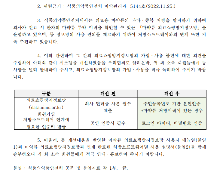 이에 각 회원들이 동 사항을 숙지하시어 차후 피해가 없으시도록 각 의 사회에서 산하 회원들에게 안내하여 주시기 바랍니다.