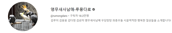 사실 필자는 유투브를 그리 즐겨보는 편은 아니었는데, 우연히 알고리즘으로 처음 접하게 된 것은 “유정아 영어 숙제 해라” 하고 잔소리하는 “앵무새사남매-루몽다로” 채널의 회색 앵무였다. 루몽다로 채널은 한 가정집에서 회색 앵무 김루이와 김다정, 코카투인 김몽몽과 김로미 등 앵무새 4마리를 키우는 일상을 다루는 채널이다.