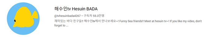 해수인 tv는 해수어를 사랑하는 부부가 해수어들을 키우기 위해 직접 어항을 타공하기도 하고, 다양한 어종을 기르면서 핸들링까지 하는 모습들을 보여주는데, 보통 수족관에서 보는 예쁜 해수어 뿐만 아니라 곰치, 수산시장에서 사온 돌돔, 랍스터 등 다양한 어종을 키우는 모습이 흥미롭다. 인기 영상 중 특히, 작은 가시 복어가 주인을 알아보고 먹이를 달라며 물을 입으로 쏘고, 주인의 손에 붙어 노는 모습 등은 물고기와도 교감이 가능하다는 새로운 사실을 알게 해주었다. 해수인 부인의 예쁜 목소리와 재치 있는 나레이션으로 편안하게 해수어의 매력에 빠져들 수 있는 채널이다. 물론, 문어에 대한 영상도 있었다!
