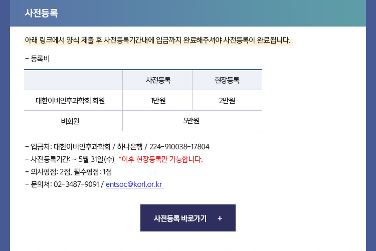 대한이비인후과학회 사무국: 02-3487-9091 / entsoc@korl.or.kr