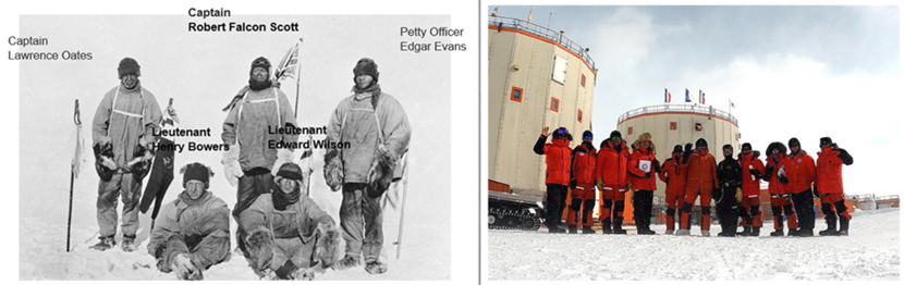 (사진) 1912년 영국 스콧 남극 탐험대와 2023년 대한민국 미답지연구단 K루트 남극탐사대.