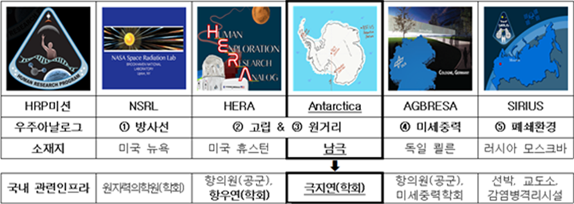 (그림) 우주공간 내 인간연구를 위한 우주 아날로그 테스트베드 모식도