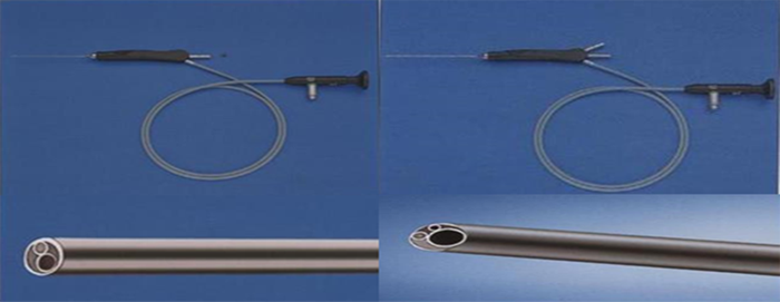 그림 1 . 진단적 내시경(왼쪽)과 치료적 내시경(오른쪽).