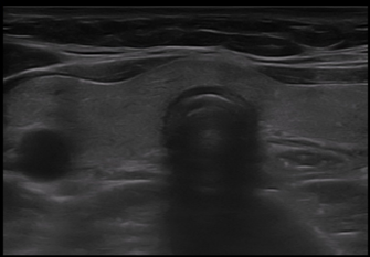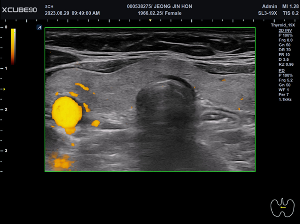 그림 2. 도플러 모드 영상. 갑상선의 도플러 모드 영상.