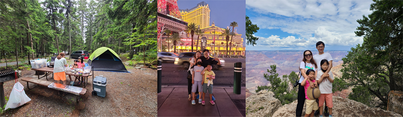 메인주 아카디아 국립공원 캠핑장에서(좌), 잠들지 않는 도시 라스베거스(중), 그랜드캐년 트레일에 앞서(우)