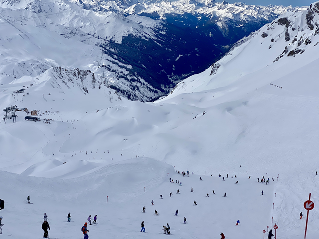 고도는 1300-2811M, 총 슬로프 길이(On-piste)는 302Km (블루 130Km, 레드 121Km, 블랙 51Km), 비정설구간(Off-piste) 200Km, 총 슬로프 갯수는 88개, 총 리프트 갯수는 210개입니다. (사진 2) 숫자로만 보면 그 크기가 잘 가늠이 안될 수도 있는데 슬로프 길이로만 현재 국내에서 가장 큰 모나 용평 스키장의 20배 정도 된다고 생각하시면 됩니다.