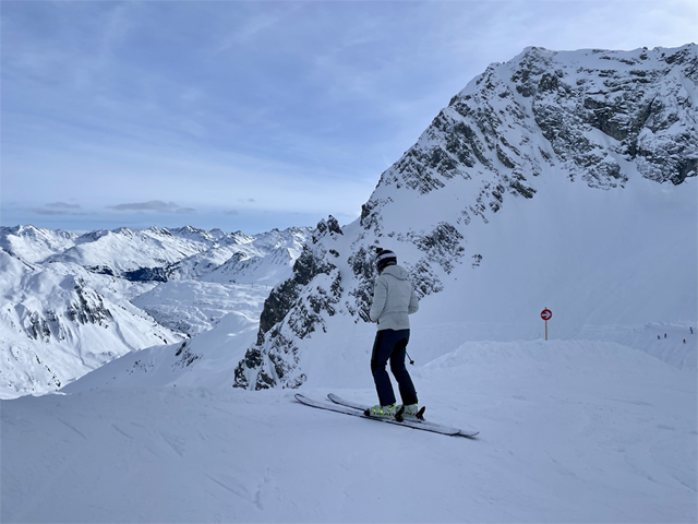 다음날은 해가 쨍하게 떠 시야가 매우 좋았었는데 유럽 알프스의 스키장들은 해발 고도가 높아서 이렇게 맑은 날은 일주일에 몇 일 안되고 대부분은 구름이 많이 끼거나 눈이 오는 날씨가 자주 있습니다. 이번 원정에서도 역시 맑은 날이 2일정도, 나머지는 눈이 오거나 구름이 많이 낀 날씨였습니다. 그래도 날씨 요정이 도와주었는지 3일에 걸쳐 50cm이상, 폭설 수준의 눈이 내려서 비정설 슬로프(off-piste)에서 파우더 스키를 즐길 수 있었습니다. 이번에 방문한 오스트리아의 스키장은 다른 유럽 스키장들과 다르게 스키를 즐기는 사람들이 엄청 많았고, 특히 가족 단위의 스키어들이 많이 보였습니다. 오스트리아 인구는 800 만명 정도 밖에 안되는데 전부 스키를 타러 온 것이 아닐까 하는 생각이 들 정도로 슬로프가 복잡했습니다. (사진 5) 기차등의 대중교통으로 접근성이 좋고 숙박비가 비교적 저렴한 St. Anton am Arlberg 마을이 사람들이 가장 많았고, 숙박비가 상상을 초월하고 차량으로만 접근이 가능한 Lech 나 Zurs 마을은 확실히 사람들이 조금 적고 한산한 분위기였습니다.