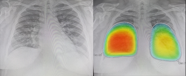 두 번째 사례는 기존 천식으로 렐바 사용 중인 30대 여성 환자로 하루 전부터 38도 이상의 고열과 심한 호흡 곤란 증상으로 내원하였다. 폐렴 의심하에 검사 시행하였으며 인공지능 판독 소견에서 양측 폐 lower lobe의 condolidation 소견이 강하게 의심되어 폐렴 진단하에 입원 치료 위해 전원한 case이다.