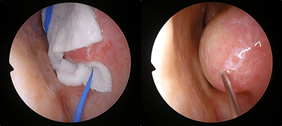 고주파 축소술과 함께 하비갑개 외골절을 시행하는 경우가 많으며, 축소술 전에 외골절을 시행하면 내시경 시야 확보가 쉽다. 출혈은 대체로 많지 않지만, 주사 부위나 전극 삽입 부위에서 출혈이 발생하면 보스민 거즈를 잠시 패킹하여 지혈할 수 있다. 술 후에는 별도의 패킹이 필요 없는 경우가 대부분이다.