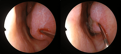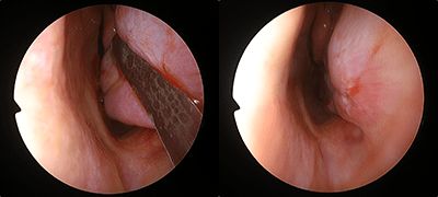 이후 2% 리도카인 2~5ml를 하비갑개 전장에 주입하면 일시적으로 하비갑개 부피가 증가해 전극이 점막 표면이나 골부에 직접 닿지 않아 시술 중 손상 위험을 줄일 수 있다.