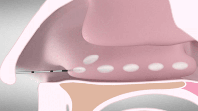 비내시경을 보면서 고주파 전극을 하비갑개 전방부로 진입시켜 점막과 골 사이의 중간층, 즉 점막하부위에 위치시킨다. 전극을 후방까지 삽입한 뒤 발판을 밟아 에너지를 전달한다.