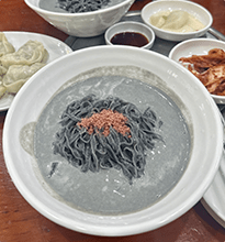 제 기준 콩국수의 원탑은 진주집도, 진주회관도 아닌 바로 이곳, 이조손칼국수입니다. 서리태로 만든 콩국수라 까만 면발과 회색빛 콩국물이 다소 낯설게 보일 수 있지만, 한 입 맛보시면 부드러운 풍미에 감탄하게 됩니다. 여기에 직접 빚은 만두도 함께 드셔보시면, 여름이 아니더라도 손님이 끊이지 않는 이유를 충분히 느끼실 수 있는 곳입니다.