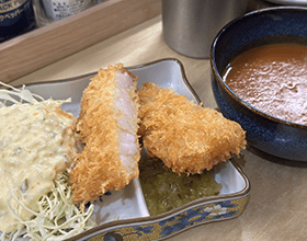 사장님이 혼자 운영하시는 작은 돈가츠 전문점입니다. 바 형태의 테이블로 10석 남짓한 규모지만, 사장님의 빠른 손놀림 덕분에 붐비는 시간에도 음식이 금세 나옵니다. 사실 제가 가장 좋아하는 음식이 돈가츠라, 병원 근처에서 자취하던 시절에는 혼밥하러도 종종 들르던 곳입니다. 돈가츠 말고도 새우가츠와 카레도 곁들여 먹기 좋아서, 일행과 함께 방문하신다면 함께 나눠 드시는 걸 추천해 드립니다.