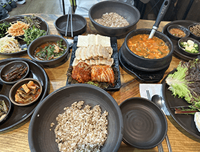 어느 날 문득 청국장이 먹고 싶어 찾아보다가 알게 된 곳인데, 알고 보니 이미 동네 사람들 사이에선 잘 알려진 맛집이었습니다. 1인 16,000원에 찌개까지 포함된 푸짐한 보쌈정식을 맛볼 수 있는데, 나물을 듬뿍 넣어 비빔밥 한 그릇을 비벼 보쌈과 함께 먹다 보면 건강하고 든든한 한 끼를 챙긴 기분이 듭니다. 보쌈정식 외에도 파전, 도토리묵, 두부부침에 막걸리 한 잔을 기울이는 손님들로 늘 북적이는 집입니다.