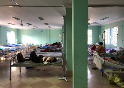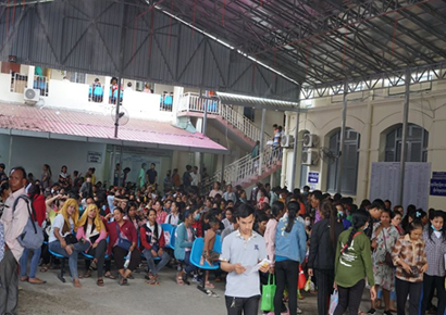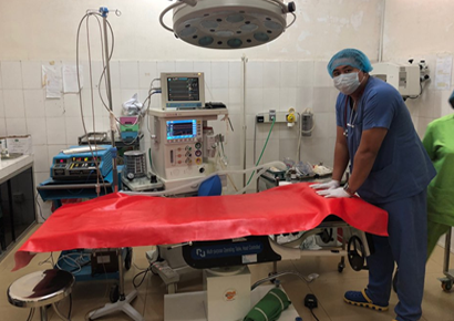 앙두엉병원 이비인후과의 첫 모습은 다음과 같았다. 먼지 날리는 주차장 옆 가건지붕 아래에 환자들이 앉아 있거나 서있으며, 복도에 길게 늘어져 있는 사람들, 100명은 족히 넘을 것 같았다 (그림 2). 놀라운 건 모두가 이비인후과 진료를 보기 위해서 대기하고 있는 환자들이었다. 이들을 뚫고 지나서 큰 진료실을 만날 수 있었다. 5명의 이비인후과 의사가 동시에 진료를 보고 있었는데, 헤드미러를 쓰고 이경을 사용하고 있었다. 물론 내시경, 현미경은 찾아볼 수 없었다. 구강암환자가 있었는데 항암방사선치료를 할 수 있는 병원으로 전원을 하는 모습도 보았다. 수술하고 보내면 좋을 것 같은데 생각을 하며 수술실로 이동하였다. 수술실 모습은 충격적이지 못해 눈물이 날 정도로 슬펐다. 100년 된 건물이고 사무실로 쓰였던 공간을 수술실로 개조하였기에, 곰팡이는 벽을 타고 있었고, 환기 시스템이 없는지 선풍기가 신나게 돌아가고 있었다 (그림 3). 이 곳에서 인공와우 수술이 시행되었다고 했는데 어떻게 하였는지 믿기지 않을 정도이다. 마취약으로 아직 할로탄을 사용하였고, 환자들은 회복실이 없어 수술 후 바로 병실로 이동했으며, 병실 부족으로 복도에 많은 환자들이 누워 있었다. 왜 구강암환자를 수술을 안하고 타병원으로 보냈는지 이해가 되는 상황이었다. 열악한 시설도 문제지만, 환자안전, 감염관리, 행정업무 등의 의료시스템의 부족은 더 심각해 보였다. 전체적으로 전쟁영화에서나 볼 수 있는 야전병원 같은 느낌이라면 맞을 것 같다 (그림 4). 과거에 우리나라 국민들도 이처럼 처참한 환경에서 치료를 받았었을 것 같은 생각에, 현재 의료 시설 및 환경에 고마움이 진심 느껴졌다.
