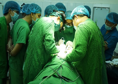 2019년 여름에 두 번째 캄보디아 출장이 있었다. 의사, 간호사, 학생들이 참여할 수 있는 이비인후과 학술대회 및 간호사 감염관리 워크숍을 진행하였다 (그림 5). 또한 의료봉사로 오신 박기남 교수님, 최지호 교수님과 함께 갑상선 수술, 악하선 절제술, 부비동 수술의 live surgery를 시행하였다 (그림 6). 부족한 기구에도 합병증 없이 완벽한 수술을 보여주신 두 교수님께 박수를 드리고, 갑상선 수술할 때 한 줄의 실크로 모든 혈관을 결찰할 수 있다는 것을 보여준 전공의 선생님께 경의를 표하며 훌륭한 어시스트에 감사를 드린다.